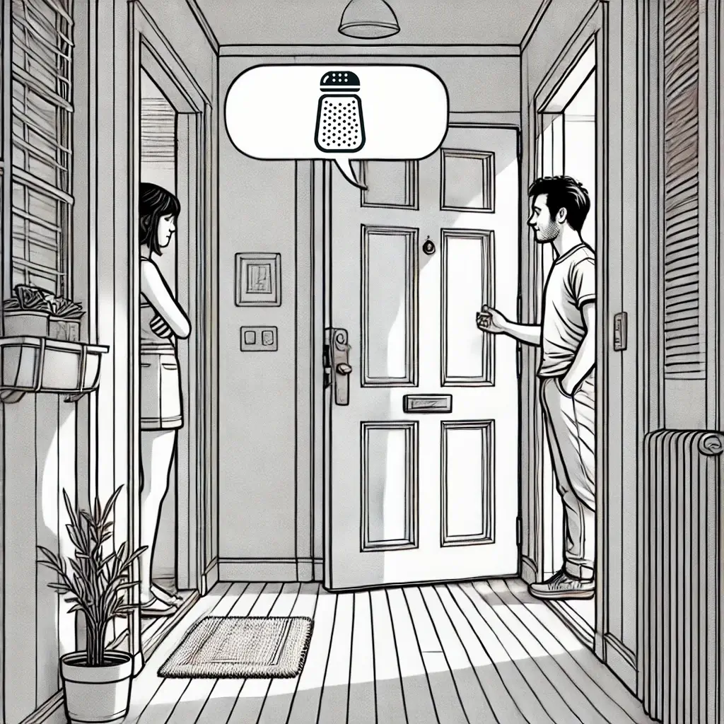 « Voici la situation : Cette personne sonne chez son voisin pour lui demander un peu de sel. Je suis le voisin, et vous jouez le rôle de cette personne. »