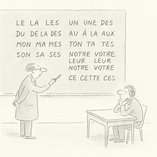 While this article focuses on articles as the main example, it’s important to note that the same function of defining and quantifying nouns also appears in other determiners, such as possessive and demonstrative adjectives. Like articles, these words — mon, ton, son, or ce, cette, ces — reflect the French language’s instinct to specify relationships and boundaries before naming a thing.